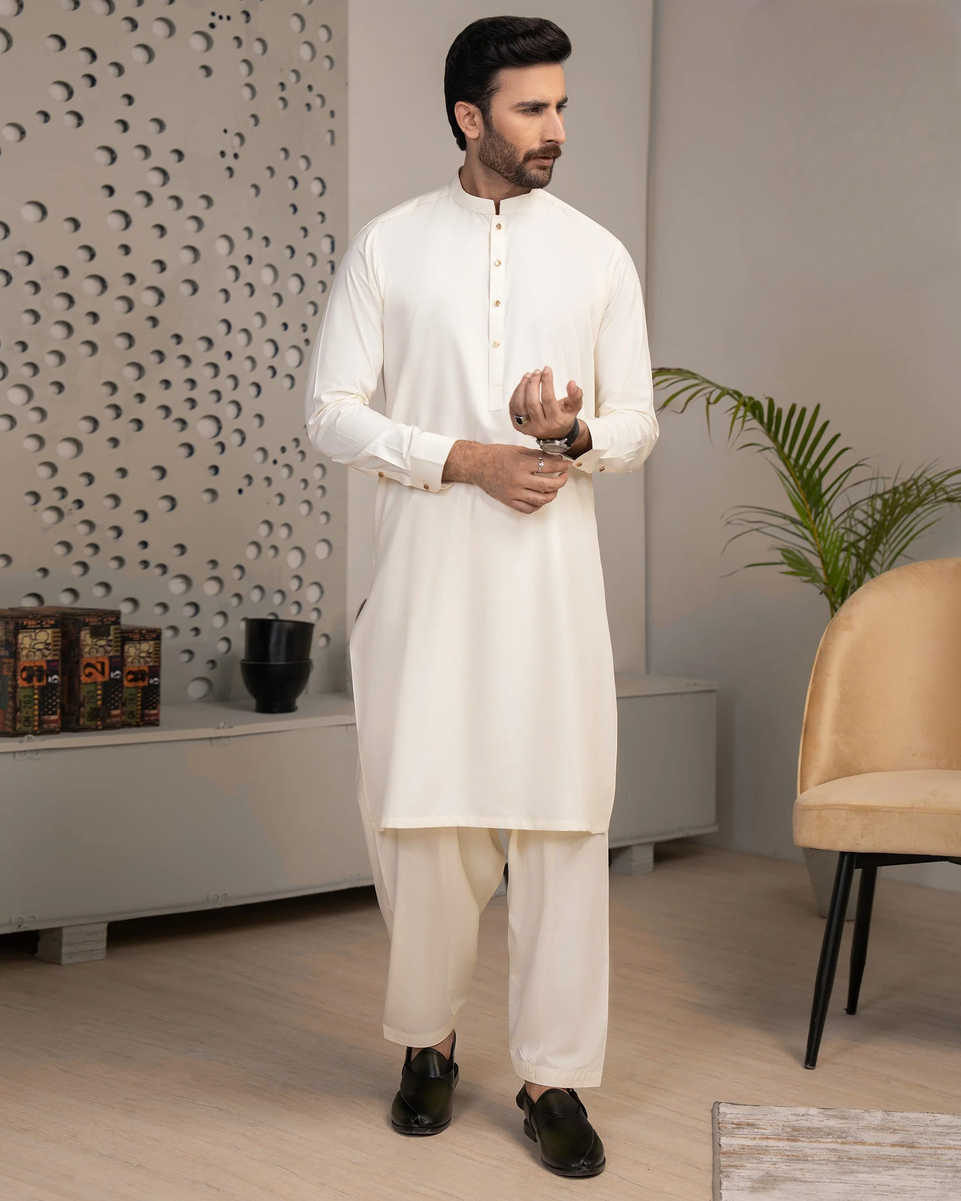Introducing the Boski shalwar kameez, made with high-quality, lightweight Boski fabric that is both comfortable and durable. The breathable and moisture-wicking fabric keeps you cool and dry even on the warmest days, making it the perfect choice for any occasion. The soft texture of the fabric provides a luxurious feel, while the durability ensures that your shalwar kameez will last for years to come. Stand out in style with the Boski shalwar kameez today!
